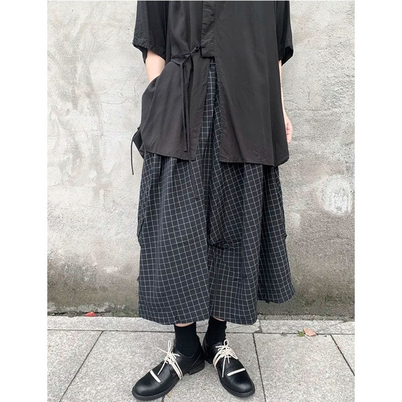 Pleated Irregular Plaid Skirt